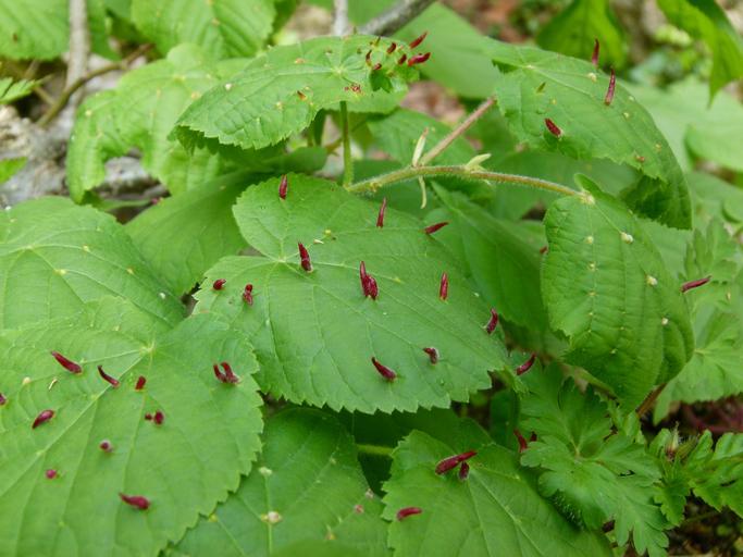 Keywords: Feuilles recouvertes de curieux boutons violets.JPG fr Feuilles recouvertes de curieux boutons violets 2012-04-14 own Dinkum cc-zero Uploaded with UploadWizard Musée départemental Albert-Kahn