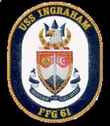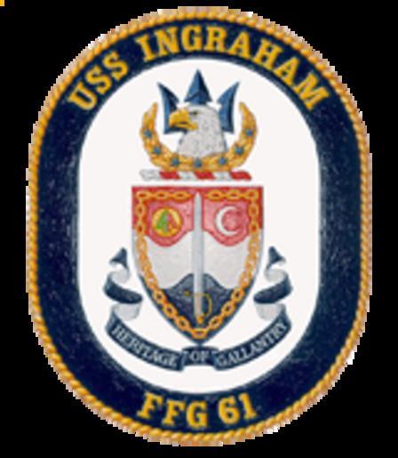 Keywords: Ffg61 crest.gif en The Crest The eagle our national symbol portrays swiftness strength and constant vigilance The trident characterizes Naval weaponry and sea prowess and symbolizes the combat readiness and modern weapon systems of FFG 61 The seven stars commemorate the third INGRAHAM's service - four battle stars earned for World War II one for the Korean War and two for the Vietnam conflict The wreath of laurel is emblematic of excellence and accomplishment and also refers to the gold medal awarded to Captain Ingraham by Congress for his gallant and judicious conduct at Smyrna The Shield Dark blue and gold are the colors traditionally associated with the US Navy The chain broken by the sword represents Captain Duncan Ingraham forcing the release of Martin Koszto a Hungarian confined by an Austrian warship who had earlier declared his intention of becoming an American citizen The sword also emphasizes the Naval protection Captain Ingraham provided the Hungarian The color red symbolizes the courage it took for Ingraham to stand his ground alone far from his country The crescent adapted from the Turkish national flag refers to where the American Captain held fast and took a stand in 1853 The color white is expressive of his purity of intent The separations of the shield honor the three previous destroyers named INGRAHAM ; the wavy divisions reflect the sea The disc with three of the colors of the Navy Unit Commendation Award commemorates the award earned in World War II by the http //www ingraham navy mil/site 20pages/crest aspx Author PD-USGov-Military-Navy USS Ingraham FFG-61 United States Navy frigates emblems |