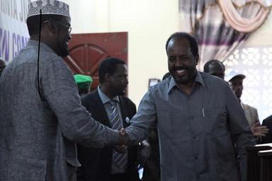 Keywords: FG PRESIDENT SHAKE HANDS WITH IJA LEADER.jpg (15079915598).jpg en A delegation led by the Federal Government of Somalia's President H E Hassan Sheik Mohamud arrived in Kismayo International Airport Shortly after he arrived he was escorted by AMISOM to Kismayo's parliament and opened the Peace and Reconciliation Conference for the Jubbaland people Other high delegates who took part and attended the Meeting were IGAD traditional elders civil society leaders the Arab League the Italian Ambassador to Somalia and religious elders from the Jubbaland and Gedo region AMISOM Photo / Mohamed Barut 2014-09-16 13 40 00 https //www flickr com/photos/au_unistphotostream/15079915598/ Flickr en AMISOM Public Information AMISOM Public Information https //flickr com/photos/61765479 N08/15079915598 2015-11-28 09 35 49 cc-zero cc-0 Photographs by the African Union Mission to Somalia Sharif Hassan Sheikh Adan Jubbaland Reconciliation Conference September 2014 |