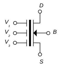 Keywords: FGMOS Symbol.svg Schematic symbol for an FGMOS Transistor with 3 inputs Bold line represents the floating gate Own 2008-01-25 Jlochoap Check categories 2008 November 14 en wikipedia Floating-gate_transistor en wikipedia Floating_Gate_MOSFET Transistor symbols |