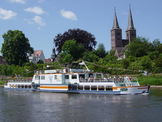 | Keywords: FGS Holzminden Flotte Weser.jpg Fahrgastschiff žHolzminden der Flotte Weser auf der Weser bei Höxter Kreis Höxter Nordrhein-Westfalen Deutschland Im Hintergrund die Türme des Westwerks der Kiliankirche Passenger ship named Holzminden of fleet line Flotte Weser on the Weser at town of Höxter District of Höxter North Rhine-Westphalia Germany Own 2009-06-01 Spunky 51 46 25 67 N 9 23 9 02 E region DE-NW_heading W Weser in Höxter Holzminden ship 1978 Water transport on the Weser St Kiliani Höxter Church towers in North Rhine-Westphalia Holzminden Festoons Westworks Summer in North Rhine-Westphalia |