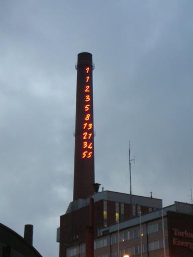 Keywords: Fibonacci.JPG 60 26 20 5 N 22 14 26 E type landmark Fibonaccin lukusarja Turku Energian Linnankadun voimalaitoksen savupiipussa Fibonacci sequence 1-55 by Mario Merz in Linnankatau power plant chimney in Turku Finland Own 2006-02-09 Kalajoki IX District Turku Mario Merz Fibonacci numbers Buildings in Turku Chimneys in Finland Coal-fired power plants in Finland |