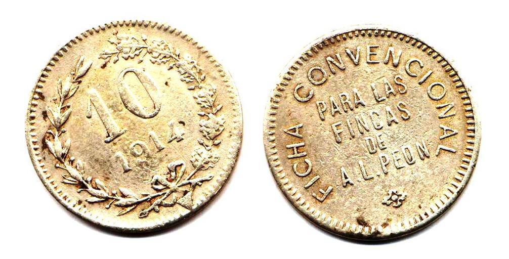 Keywords: Ficha por $ 0.10 de las fincas de Agusto L. Peón de 1914, Yucatán (01)(anverso y reverso).jpg es Ficha por 0 10 de las fincas de Agusto L Peón de 1914 Yucatán 2013-08-06 12 59 51 own Inri PD-Mexico cc-zero Coins of Mexico Uploaded with UploadWizard |