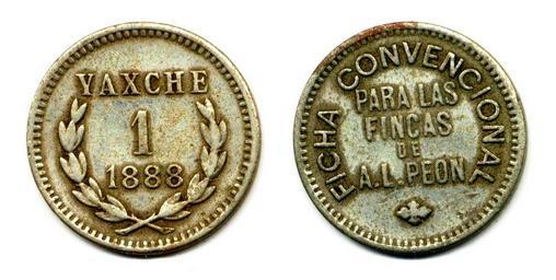 Keywords: Ficha por 1 real de la Hacienda Yaxché de Peón, Yucatán de 1888 (01)(anverso y reverso).jpg es Ficha por 1 real de la Hacienda Yaxché de Peón Yucatán de 1888 2014-09-22 12 29 01 own Inri PD-Mexico cc-zero Uploaded with UploadWizard Coins of Mexico |