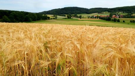 Keywords: field grain agriculture field crops nature arable cornfield spike flour golden yellow landscape wheat