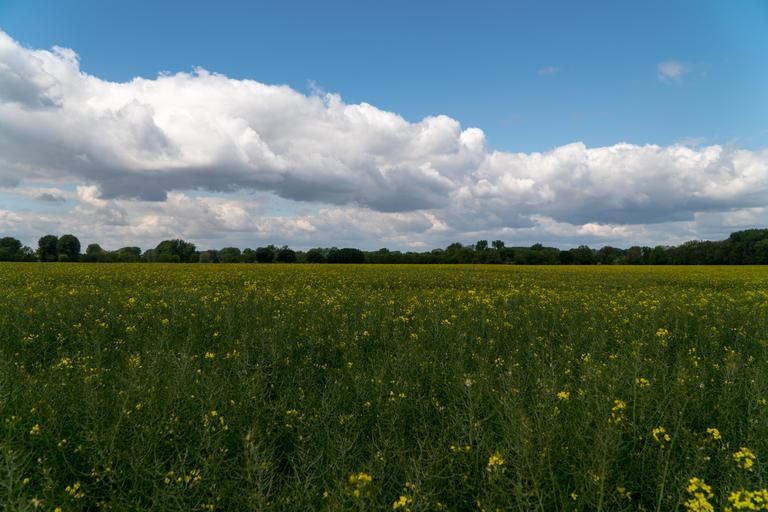 Keywords: field of rapeseeds oilseed rape field yellow plant landscape nature rare plant summer clouds sky blue scenic weather cloudscape summer clouds background