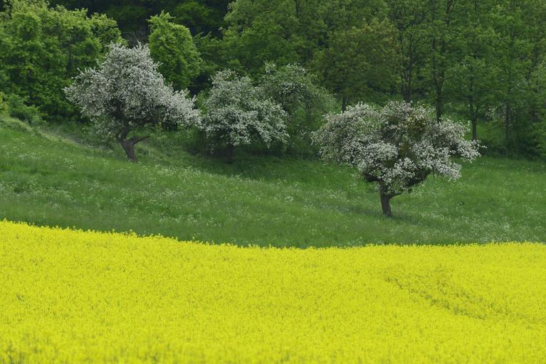 Keywords: field of rapeseeds yellow l landscape spring rape blossom rare plant agriculture