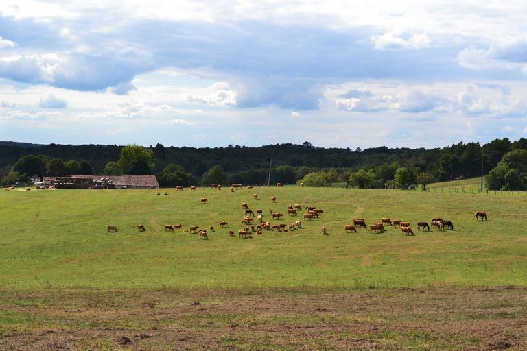 Keywords: fields herd cows horses field farm agriculture cattle nature prairie pasture pre dordogne france