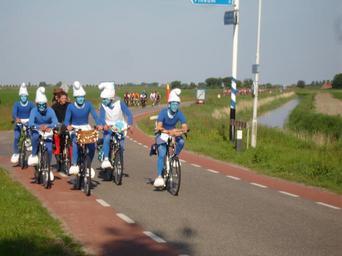Keywords: Fietselfsmurfentocht.JPG en Smurfing on the 11 cities tour Own Handige Harrie 2009-06-01 Costume Fietselfstedentocht Cosplay of the Smurfs