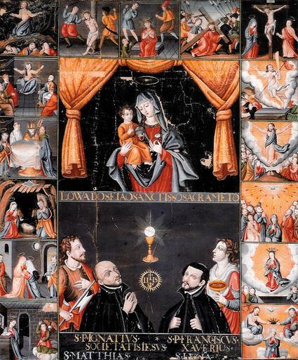 | Keywords: Fifteen Mysteries of the Virgin Mary (Kyoto University Museum).jpg en Fifteen Mysteries of the Virgin Mary Kyoto University Museum Japan There is a similar painting in Ibaraki Osaka https //commons wikimedia org/wiki/File Maria_Jugo_Gengizu_ Ibaraki_City_Museum_of_Cultural_Properties 2 jpg ja 紙 著色聖母十五玄義・聖体秘跡図 原田家 マリア十五玄義図 http //www rekishijin jp/rekishijinnews/20111108-2/ Anonymous Edo-period artist Edo period pre-1868 PD-old-100 Paintings of the Edo period Christianity in Japan Paintings of Francis Xavier Ignatius of Loyola Mary in Far East art Important Cultural Property of Japan in Kyoto prefecture Kyoto University Museum |