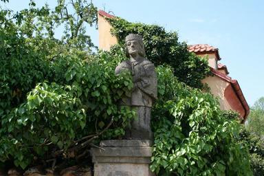 Keywords: fig statue sculpture garden sculpture stone figure tree leaves bush green garden statue