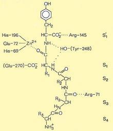 Keywords: Figura2.jpg Complex postulat unit productivament de la carboxipeptidasa A i un substrat polipèptid own 2009-12-15 FERSHT A 1980 Estructura y mecanismo de los enzimas Espanya Reverté domini públic Enzyme reactions
