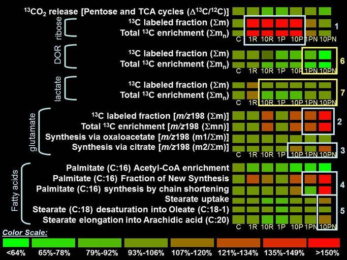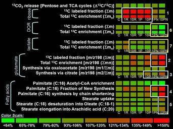 Keywords: Figures PNU913252(01-20-05).jpg en Stable 13C isotope-based dynamic metabolic profile array of Rosiglitazone Pioglitazone and PNU-91325 in cultured cells fed with U-13C18stearic acid as the tracer The color of each square corresponds to the rate of 13C carbon flux from stearic acid into products such as RNA-ribose DNA-deoxyribose lactate glutamate of the TCA cycle and fatty acids induced as altered by drug treatment The 13C labeled isotopolome readily reveals associations among stearic acid substrate and multiple products in cultured tumor cells liver © Springer Science+Business Media Inc 200610 1007/s11306-006-0015-5; Open Access http //link springer com/article/10 1007/s11306-006-0015-5/fulltext html 2013-02-03 12 36 50 http //link springer com/article/10 1007/s11306-006-0015-5/fulltext html George G Harrigan Jerry Colca Sándor Szalma László G Boros cc-zero Uploaded with UploadWizard Uncategorized 2013 February 3 |