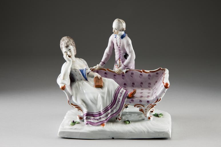 Keywords: Figurgrupp. Thuringen - Gotha - Hallwylska museet - 87060.tif Bestående av en dam halvliggande på en soffa bakom vars rygg en kavaljer står lutad mot henne På halvrund fotplatta Dekor i färger på glasyren Fabriken grundlagd 1757 av Wilhelm Teodor von Rothberg Såldes senare till August von Gotha 1802 som 1813 sålde fabriken vidare till Egidius Hemmeberg Pris 40 Kr Se rescontra Walther v H 12 mars 1896 samt toilettbok original caption Figurgrupp Thuringen / Gotha HWY Gr XLVII XII T a 01 <br/> Nyckelord Figurgrupp Porslin Rothberg Rosa 1700-tal Dräkter Föremålsbild 2half other date century 18 size cm 10 5 fotplatta size cm 15 size cm 15 5 fotplatta HWY place of origin Gotha Thüringen original filename hm_dig4699_6849 17952 inventory number HWY XLVII XII T a 01 87060 CC-BY-SA Jens Mohr Jens Mohr Porcelain sculptures Gray pink white Porcelain in the Hallwyl museum Media contributed by LSH dim-with multiple size templates Media contributed by LSH unmatched keyword Porcelain of Thuringia Media contributed by LSH 2013-10 |