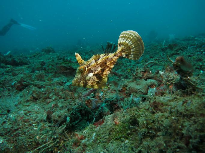 Keywords: filefish fish underwater scuba reef tropical water marine coral nature blue animal diving wildlife exotic leatherjacket ocean sea indonesia lembeh muck macro