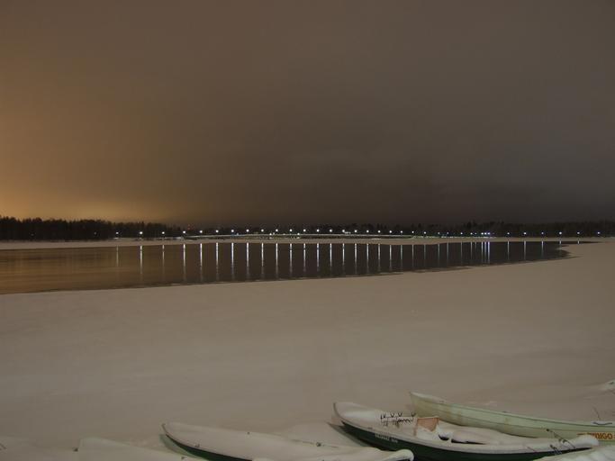 Keywords: finland sky clouds bridge architecture sunset night evening dusk scenic landscape river water reflections lights lighting kayaks canoes winter snow ice nature outside