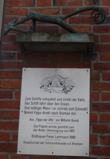 | Keywords: Fipps (Schnoor).jpg en Sculpture Fipps der Affe 1980 by Peter Lehmann Location Schnoor street in Bremen Germany own Immanuel Giel 2009-05 Schnoor Sculptures in Bremen Statues of monkeys Peter Lehmann sculptor Plaques in Bremen 2009 in Bremen |