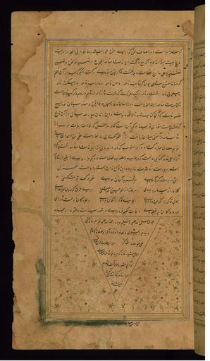 Keywords: Firdawsi - Colophon - Walters W60014A - Full Page.jpg This colophon from Walters manuscript W 600 is the first of three It gives the title of the preface as Dibachah-i Baysunghuri 10th century AH/AD 16th century Safavid ink pigments laid paper cm 32 5 19 accession number W 600 14A 83486 Ahmad date and mode of acquisition unknown seal impression with name on fol 1a Unknown owner 1789 mode of acquisition unknown ownership entry dated 12 Jumadá I 1204 AH/AD 1789 on fol 1a Henry Walters Baltimore date and mode of acquisition unknown Walters Art Museum Henry Walters Acquired by Henry Walters place of origin Iran Walters Art Museum license 2D Shahnameh Safavid Walters MS 600 Media contributed by the Walters Art Museum needs category review |