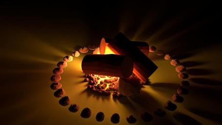 Keywords: fire campfire rocks night lowpoly camping coals low poly logs