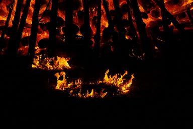 Keywords: fire circle symbolism symbol hot burn fire embers glow wood holzstapel glow oven heat wave midsummer blaze flame red yellow dark night solstice