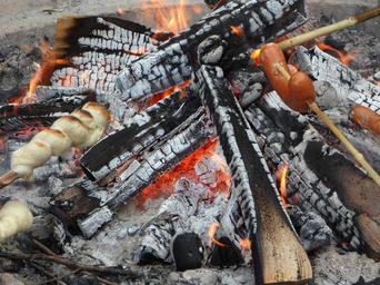 Keywords: fire fireplace barbecue hot grill heat grilling grilled sausage stick bread sommerfest
