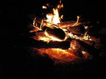 Keywords: fire flame night yellow burn wood fire heat embers heiss hot dark