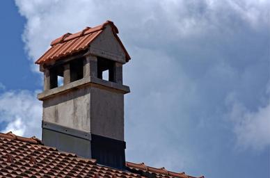 Keywords: fireplace house roof brick chimney weather protection cover covered leave roofing tiles architecture