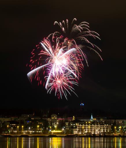 Keywords: fireworks color light colors water reflection new year jyväskylä