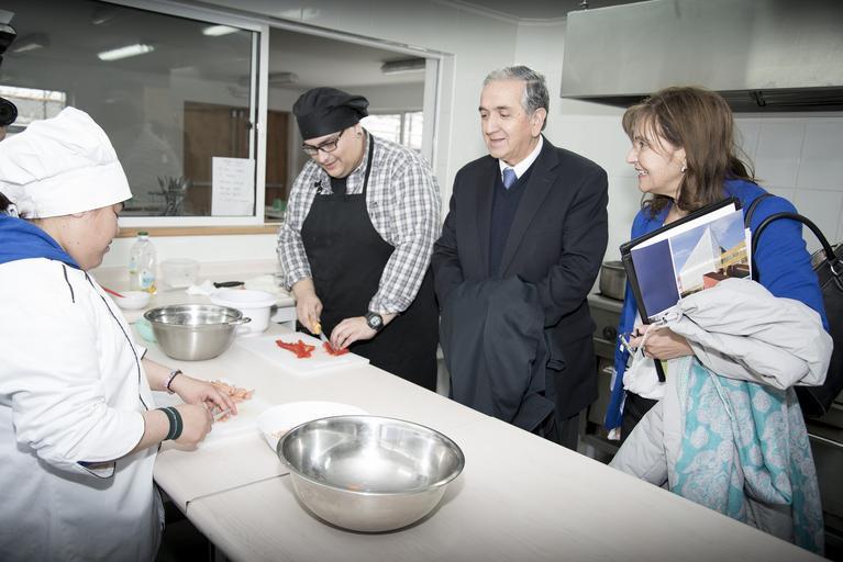 Keywords: people indoor La firma de convenio entre UMAG y la Corporación Manos de Hermanos se realizó el día Martes 7 de Abril de 2015 en el Centro Laboral de la Corporación ubicado en la Calle Cirujano Videla # 34. El objetivo de este convenio es que los alumnos de UMAG puedan realizar prácticas profesionales en este centro laboral. La corporación Manos de Hermanos acoge a adultos con capacidades diferentes entre 26 y 50 años, les entrega herramientas para su autonomía, en el ámbito de creatividad artística, mejora de la motricidad, cocina y aseo. Manos de Hermanos es una corporación privada sin fines de lucro, que se financia mediante proyectos del gobierno regional, además de aportes voluntarios de privados. En la Foto (de izq a der): Dr. Juan Oyarzo (Rector UMAG) junto a Ruth Ortiz (Secretaria UMAG) visitan Taller de Conina La firma de convenio entre UMAG y la Corporación Manos de Hermanos se realizó el día Martes 7 de Abril de 2015 en el Centro Laboral de la Corporación ubicado en la Calle Cirujano Videla # 34. El objetivo de este convenio es que los alumnos de UMAG puedan realizar prácticas profesionales en este centro laboral. La corporación Manos de Hermanos acoge a adultos con capacidades diferentes entre 26 y 50 años, les entrega herramientas para su autonomía, en el ámbito de creatividad artística, mejora de la motricidad, cocina y aseo. Manos de Hermanos es una corporación privada sin fines de lucro, que se financia mediante proyectos del gobierno regional, además de aportes voluntarios de privados. En la Foto (de izq a der): Dr. Juan Oyarzo (Rector UMAG) junto a Ruth Ortiz (Secretaria UMAG) visitan Taller de Conina |