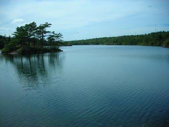 Keywords: First Chain Lake Nova Scotia Canada.JPG en The First Chain Lake in Nova Scotia seen from the east edge One can see also a small island in the lake own Kmw2700 2009-09-17 44 38 19 03 N 63 38 17 71 W region CA Lakes of Nova Scotia