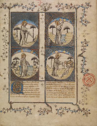 Keywords: First Master of the Bible historiale of Jean de Berry (French, active about 1390 - about 1400) - Scenes from the Creation - Google Art Project.jpg Google Art Project institution Getty Center active about 1390 - about 1400 6807889 First Master of the Bible historiale of Jean de Berry French French /collection/the-j-paul-getty-museum/artwork/scenes-from-the-creation-first-master-of-the-bible-historiale-of-jean-de-berry-french-active-about-1390-about-1400/6805995/ First Master of the Bible historiale of Jean de Berry French active about 1390 - about 1400 illuminator /artist/first-master-of-the-bible-historiale-of-jean-de-berry/6804936/ 6804936 /collection/the-j-paul-getty-museum/ The J Paul Getty Museum 343005 http //www getty edu/museum 3/12/2012 5 11 57 PM /collection/the-j-paul-getty-museum/artwork/scenes-from-the-creation-first-master-of-the-bible-historiale-of-jean-de-berry-french-active-about-1390-about-1400/6805995/ 1390 about 1390 - 1400 Unicorns Fish Bulls Lions God the Father Adam Eve Tempera colors colored washes gold leaf and ink on parchment 377 6805995 True 1400 3/25/2012 9 23 14 AM lido getty edu-gm-obj5934 http //www getty edu/art/gettyguide/artObjectDetails artobj 5934 http //www getty edu/legal/copyright html Detached leaf 1390 1410 Paris France Creation w298 x h377 cm about 1390 - 1400 False 0 765625 Part scenes-from-the-creation-first-master-of-the-bible-historiale-of-jean-de-berry-french-active-about-1390-about-1400 Scenes from the Creation s 298 Tempera colors colored washes gold leaf and ink on parchment Unicorns Fish Bulls Lions God the Father Adam Eve http //www getty edu/legal/copyright html special url_id qwE3tZPEpcnz0A PD-old-100 MS LUDWIG XIII 3 Getty museum - Leaves from Ancient History up to the Reign of Caesar Google Art Project works by First Master of the Bible historiale of Jean de Berry Creation in miniatures God the Geometer |
