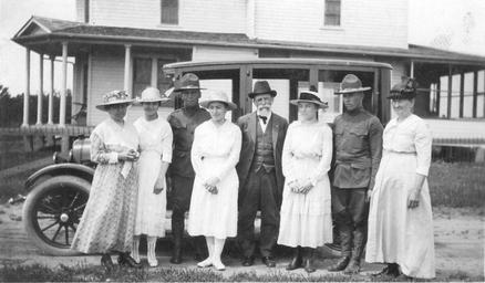 Keywords: blackandwhite monochrome outdoor black and white 2014-0168m Date: Sunday, June 2, 1918 Location: Camp Funston, Kansas MLA filing: World War I-Kurt R. Galle Collection, Photos 1-210, No.116-135 Original Size: 10.1 x 5.9 cm Source: Louisa M. (Epp) Galle, 1989 Photographer: Notes: From Kurt Galle's "Camp Funston, April 26, 1918-March 24, 1919" album, p.22-120; (L to R) Marna Galle, Linda Galle, Oswin K. Galle, Priscilla Galle, William Galle-father, Clara Galle, Kurt R. Galle, Mrs. William (Anna Krehbiel) Galle; Used in Mennonite Life, December 1989, p.11; Used in History of the U.S. Vol. 2 by DiBacco, 1992 2014-0168m Date: Sunday, June 2, 1918 Location: Camp Funston, Kansas MLA filing: World War I-Kurt R. Galle Collection, Photos 1-210, No.116-135 Original Size: 10.1 x 5.9 cm Source: Louisa M. (Epp) Galle, 1989 Photographer: Notes: From Kurt Galle's "Camp Funston, April 26, 1918-March 24, 1919" album, p.22-120; (L to R) Marna Galle, Linda Galle, Oswin K. Galle, Priscilla Galle, William Galle-father, Clara Galle, Kurt R. Galle, Mrs. William (Anna Krehbiel) Galle; Used in Mennonite Life, December 1989, p.11; Used in History of the U.S. Vol. 2 by DiBacco, 1992 |