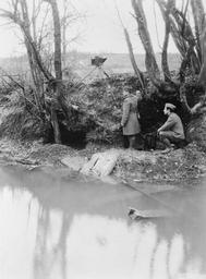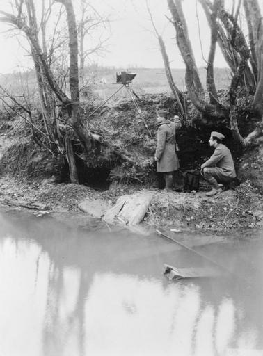 Keywords: First World War Photographers Q113418.jpg First World War Photographers<br/> An American official photographer of the US Signal Corps and his assistant carry out reconnaissance photography under cover of a deep river bank by the River Aire on the Western Front They are using a glass plate camera mounted on a tripod to photograph the German lines American official photographer US Signal Corps 1918-11-06 First World War Q 113418 205196674 http //media iwm org uk/iwm/mediaLib//39/media-39640/large jpg This image was created and released by the Imperial War Museum on the http //www iwm org uk/corporate/privacy-copyright/licence IWM Non Commercial Licence Photographs taken or artworks created by a member of the forces during their active service duties in the First World War became covered by Crown Copyright provisions and so faithful reproductions may be reused under that licence which is considered expired 50 years after their creation Associated themes United States Army 1914-1918 Western Front 1914-1918 Associated keywords Photography Reconnaissance American First World War Official Exchange Collection photographs PD-USGov American First World War Official Exchange collection Images uploaded by Fæ |