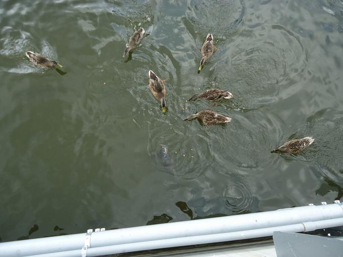 Keywords: Fish and ducks fight over dropped food in marina at National Harbor in Maryland.JPG en Fish barely visible beneath surface and ducks scramble to eat food dropped into the water 2014-07-21 15 09 16 own Tomwsulcer cc-zero Uploaded with UploadWizard Anas platyrhynchos groups males in eclipse plumage Unidentified fishes National Harbor Maryland |