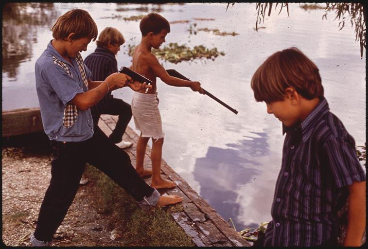 | Keywords: FISHERMEN'S SONS PRACTICE TARGET SHOOTING IN BAYOU GAUCHE - NARA - 544221.jpg BAYOU GAUCHE Scope and content General notes Louisiana 544221 Local identifier 412-DA-1728 Environmental Protection Agency 12/02/1970 - NARA-Author Messina John 1940- Photographer 8464458 <br /> Louisiana United States North and Central America state 4191135 31 -92 <br /> Still Picture Records Section Special Media Archives Services Division NWCS-S National Archives at College Park 8601 Adelphi Road College Park MD 20740-6001 08/1972 Record group Record Group 412 Records of the Environmental Protection Agency 1944 - 2006 Record group ARC 708 DOCUMERICA The Environmental Protection Agency's Program to Photographically Document Subjects of Environmental Concern compiled 1972 - 1977 Series ARC 542493 File unit File unit ARC Variant control numbers Agency-Assigned Identifier 029/48/001728<br /> NAIL Control Number NWDNS-412-DA-1728 Other versions <gallery> File FISHERMEN'S_SONS_PRACTICE_TARGET_SHOOTING_IN_BAYOU_GAUCHE_-_NARA_-_544221 tif tif File FISHERMEN'S_SONS_PRACTICE_TARGET_SHOOTING_IN_BAYOU_GAUCHE_-_NARA_-_544221 jpg jpg </gallery> NARA-cooperation PD-USGov Bayou Gauche Males with rifles 1972 Children with weapons 1972 Brothers 1972 Adolescent boys in the United States 1972 1972 in Louisiana NARA images of Louisiana John Messina - DOCUMERICA Four boys Boys with weapons |