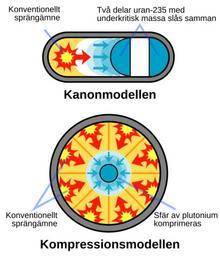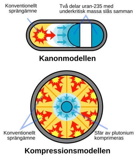 MAKE A MEME View Large Image Fission bomb assembly methods se.svg Schematisk framställning av de två metoder som används i kärnvapen för att få laddningen att uppnå kritisk massa en Schematic representation of the two methods with which to assemble a fission ...