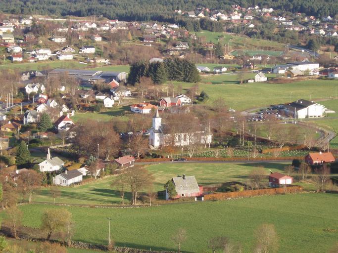 Keywords: Fitjar kyrkje.JPG Fitjar kyrkje i midten Nedanfor kyrkja til venstre ligg Håkonarparken og Håkonstatuen Bak kyrkja til høgre ligg Fitjar Bedehus Lenger bak til venstre ligg kultur- og idrettsbygget medan Fitjar Idrettspark ligg oppafor der igjen i høgre øvre hjørne Own 2007-11-04 Frokor Fitjar kirke |
