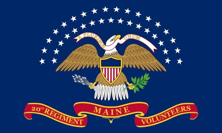 Keywords: Flag of the 20th Maine Volunteer Infantry Regiment.svg en Flag used by the 20th Maine Regiment in the American Civil War Own John McKean 2009-08-14 Blue green red white yellow flags E Pluribus Unum Flags of Maine Flags of the American Civil War Flags with arrows Flags with banners Flags with branches Flags with eagles Flags with more than twenty stars Flags with stars in semicircle formation Flags with white five-pointed stars Infantry flags of the United States Army Inscribed flags names Maine in the American Civil War Military flags with stars Military in Maine SVG flags - historical of the United States SVG flags - military of the United States SVG in Latin |