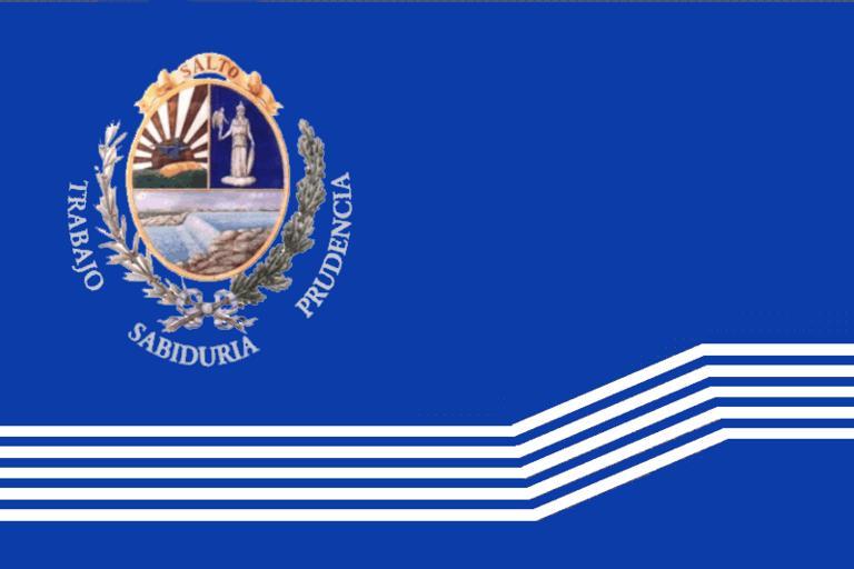 Keywords: Flag of Salto Department.png Flag of the Department of Salto Uruguay 2006-01-29 own assumed Jordevi Flags of departments of Uruguay Sal Symbols of Salto Department Minerva in heraldry Waterfalls in heraldry Anvils in heraldry