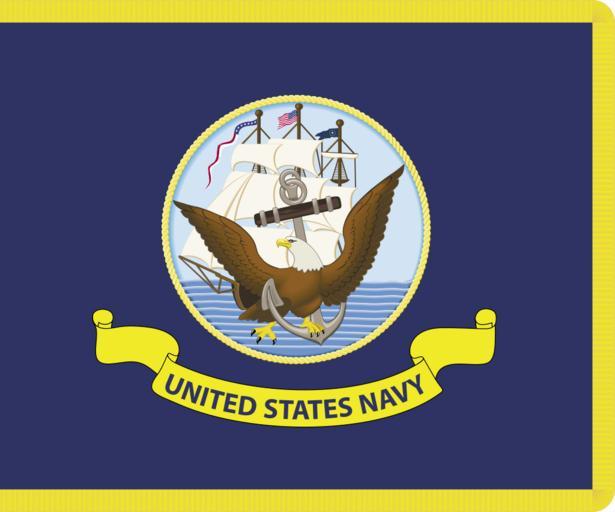 | Keywords: Flag of the United States Navy (official specifications).svg Flag of the United States Navy as defined in s Executive Order 10812 of April 24 1959 The design is described there as <blockquote>The flag for the United States Navy is 4 feet 4 inches hoist by 5 feet 6 inches fly of dark blue material with yellow fringe 2½ inches wide In the center of the flag is a device 3 feet and 1 inch overall consisting of the inner pictorial portion of the seal of the Department of the Navy with the exception that a continuation of the sea has been substituted for the land area in its proper colors within a circular yellow rope edging all 2 feet 6 inches in diameter above a yellow scroll inscribed <small>UNITED STATES NAVY</small> in dark blue letters </blockquote> The U S Navy flag is used for display purposes at ceremonies parades and other public functions where the U S Navy has an official presence usually being carried by an honor guard on ceremonial occasions It is not used for outdoor fixed permanent purposes and is not flown on Navy ships Versions without fringe and different dimensions seem to be common though it appears they are not technically the official U S Navy flag as the executive order has not been amended Prior to 1959 the Navy Infantry Battalion flag was used to represent the U S Navy For more information see the http //www history navy mil/faqs/faq44-1 htm Navy's flag history page http //mysite verizon net/vzeohzt4/Seaflags/parade/colors html nav SeaFlags http //flagspot net/flags/us nv html Flags of the World U S Navy document NTP 13 B http //www ushistory org/betsy/images/ntp13b pdf section 1710 and Navy regulation http //doni daps dla mil/Directives/10000 20General 20Material 20and 20Equipment 20Support/10-500 20Support 20and 20Maintain 20Navigational 20 20Mooring 20Aids/10520 1 pdf OPNAVINST 10520 1 which replaced a similar SECNAVINST 10520 2D regulation from 1974 Seal portion and rope edging taken from File US-DeptOfNavy-Seal svg a U S Navy work; the rest self-drawn following images like File Navy flag gif 1959-04-24 United States Department of the Navy PD-USGov-Military-Navy insignia <gallery> File Flag of the United States Navy png Bitmap version; lacking fringe File USN - Flag of the USN with Fringe png Elongated version; with fringe </gallery> PD-US-no notice PD-USGov-POTUS 1959 in Washington D C 1959 works in the United States 24 April Blue red white yellow flags April 1959 in the United States Flags of the United States Navy Flags with anchors Flags with eagles Flags with ships Inscribed flags names SVG flags - naval of the United States |