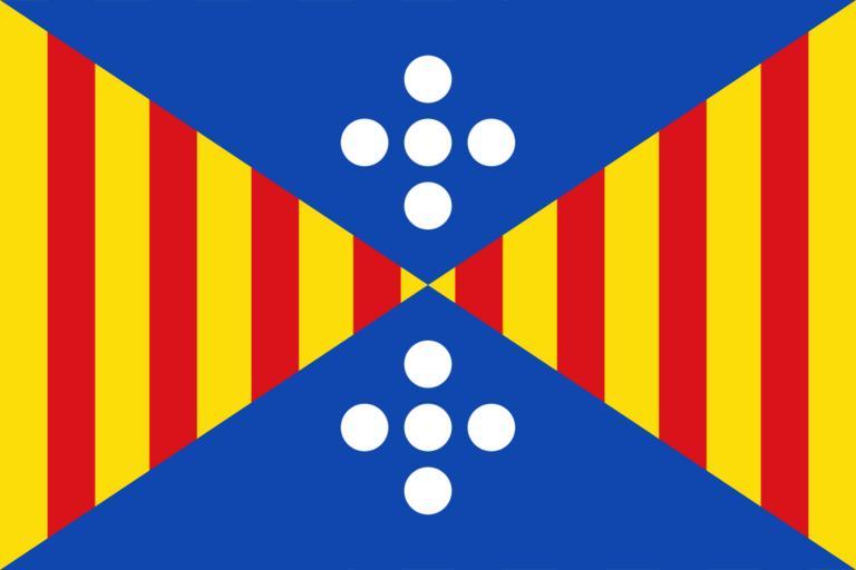 Keywords: Flag of Vilagrassa Spain.svg Bandera de Vilagrassa Lleida Espanya Bandera apaïsada de proporcions dos d'alt per tres de llarg quarterada en aspa amb els triangles superior i inferior blaus amb cinc disc blancs posats en creu cadascun de diàmetre 1/12 de l'alçària del drap i separats per 1/36 de la mateixa alçada centrats a cada un dels dos triangles; i els triangles dels costats grocs cadascun amb quatre pals vermells <ref> cite web http //www gencat cat/eadop/imatges/2981/99243018 pdf RESOLUCIÓ d'1 de setembre de 1999 per la qual es dóna conformitat a l'adopció de la bandera del municipi de Vilagrassa 2012-06-01 1999-09-23 pdf DOGC núm 2981 Generalitat de Catalunya català </ref> Bandera de Vilagrasa Lérida España Bandera de proporciones 2 3 cuartelada en aspa con los triángulos superior e inferior azules con cinco discos blancos puestos en cruz cada uno de diámetro 1/12 de la altura del paño y separados por 1/36 de la misma altura centrados en cada uno de los dos triángulos; y los triángulos de los lados amarillos con cuatro palos rojos <ref> cite web http //www gencat cat/eadop/imagenes/2981/99243018 pdf RESOLUCIÓN de 1 de septiembre de 1999 por la que se da conformidad a la adopción de la bandera del municipio de Vilagrassa 2012-06-01 1999-09-23 pdf DOGC núm 2981 Generalidad de Cataluña español </ref> en Flag of Vilagrassa in Lleida province Spain Flag quartered in saltire Blue top and bottom each with five white discs in the shape of a cross the discs as wide as 1/12 of the flag's height and separated from one another by 1/36 of the flag's height centred on each triangle Yellow hoist and fly each with four vertical red stripes Source http //flagspot net/flags/es-l-vgs html References reflist Own Nethunter 2008-08-30 insignia Catalonia <gallery>Bandera de Vilagrassa svg Bandera de Vilagrassa svg</gallery> Flags of municipalities of the province of Lleida Vilagrassa Vilagrassa SVG flags of Spain SVG flags with an aspect ratio of 3 2 Diagonal quartered flags |