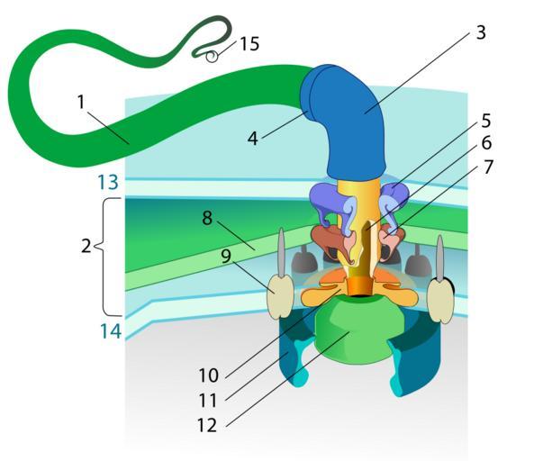 Keywords: Flagellum base diagram keys.svg see en talk page Image moved from File Flagellum bacterial numbered svg Numbered version from Image Flagellum base diagram en svg A Gram-negative bacterial flagellum --- Flagellum plural flagella is a long slender projection from the cell body Its function is usually to propel a unicellular or small multicellular organism Own 2008-03-04 Mariana Ruiz Villarreal LadyofHats Other versions/Flagellum base diagram LadyofHats Bacteria diagrams Procaryota cell diagrams Flagella Diagrams labelled with numbers only |