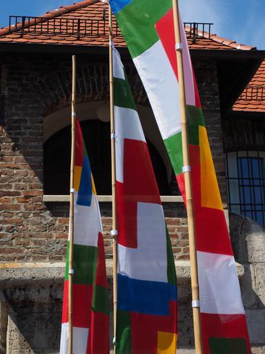 Keywords: flags colorful blow wind flutter danube fixed ulm