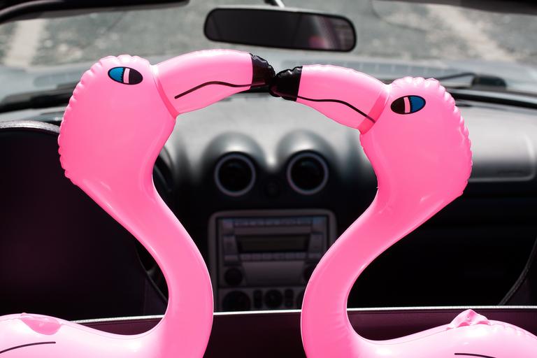 Keywords: flamingo beaks inflatable pink romantic lovers heart auto cabriolet holiday vacation beginning travel decorative animal bird humor funny toys cheerful ventilation autoradio rear mirror summer sun