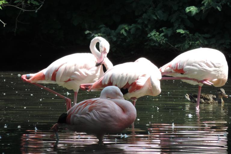 Keywords: flamingo birds zoo augsburg enclosure animal zoo standing