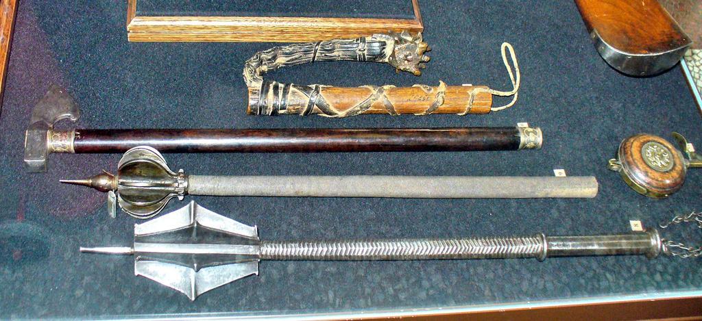| Keywords: Flangmaces Axe Flail GIM.jpg ru Русское холодное о ужие Шестопё XV-XVII и пе нач XVI-XVII сталь Топо ок XVI-XVII се еб о де ево г ави овка Кистень XVI 2011-07-04 own Лапоть cc-zero Battle axes of Russia Flails of Russia Flanged maces Maces of Russia Pernach Uploaded with UploadWizard Weapon in Moscow State Historical Museum |