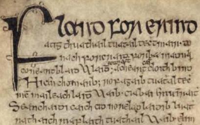 Keywords: Flann for Érinn.png The opening lines of the poem Flann for Érinn Flann over Ireland written by Máel Mura Othna died 887 in praise of Flann Sinna From the Leabhar Mór Leacain Book of Lecan Royal Irish Academy manuscript RIA MS 23 P 2 folio 296 v The work was written some time between 1397 and 1418 Scribe Adam ó Cuirnín copied the manuscript on the instruction of Gilla Isa Mor mac Donnchadh MacFhirbhisigh This image from the Irish Script On-Screen project of the Dublin Institute for Advanced Studies http //www isos dias ie/master html http //www isos dias ie/libraries/RIA/RIA_MS_23_P_2/english/index html website Original work created 1397x1418 scan created 2002 Original work Adam ó Cuirnín and Gilla Isa Mor mac Donnchadh MacFhirbhisigh; scan Royal Irish Academy PD-ART The original work has been available to the public at the Royal Irish Academy since 1787 Under the http //www irishstatutebook ie/2000/en/act/pub/0028/sec0017 html partii-chapi-sec17 Copyright and Related Rights Act 2000 copyright shall not subsist in a work which is or to the extent that it is a copy taken from a work which has been previously made available to the public A collotype facsimile of the manuscript has been published The Book of Lecan Leabhar Mór Mhic Fhir Bhisigh Leacáin ed Kathleen Mulchrone Dublin 1937 PD-Art Medieval Irish manuscripts Ireland in the 14th century Ireland in the 15th century |