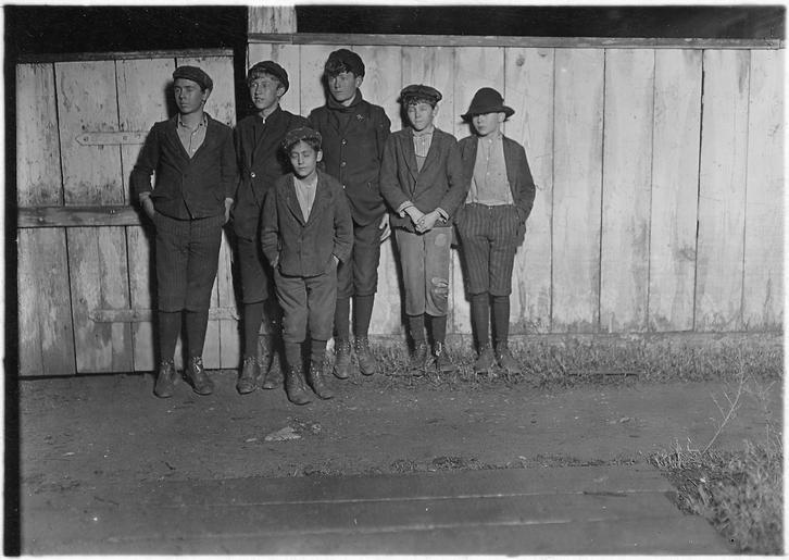 Keywords: Flashlight photo 6 P.M. going home from King Mfg. Co. Two of the smallest boys been in mill 2 years. One of the... - NARA - 523150.tif Scope and content General notes 523150 Local identifier 102-LH-507 Department of Commerce and Labor Children's Bureau 1912 - 1913 NARA-Author Hine Lewis Wickes 1874-1940 Photographer 1122914 <br /> Still Picture Records Section Special Media Archives Services Division NWCS-S National Archives at College Park 8601 Adelphi Road College Park MD 20740-6001 1909-01-13 Record group Record Group 102 Records of the Children's Bureau 1908 - 2003 Record group ARC 431 National Child Labor Committee Photographs taken by Lewis Hine compiled ca 1912 - ca 1912 documenting the period 1908 - 1912 Series ARC 523064 File unit File unit ARC Variant control numbers NAIL Control Number NWDNS-102-LH-507 yes Other versions <gallery> File Flashlight_photo_6_P M _going_home_from_King_Mfg _Co _Two_of_the_smallest_boys_been_in_mill_2_years _One_of_the _-_NARA_-_523150 tif tif File Flashlight_photo_6_P M _going_home_from_King_Mfg _Co _Two_of_the_smallest_boys_been_in_mill_2_years _One_of_the _-_NARA_-_523150 jpg jpg </gallery> NARA-cooperation PD-USGov Child labor in the United States NARA TIF images with categorized JPGs |