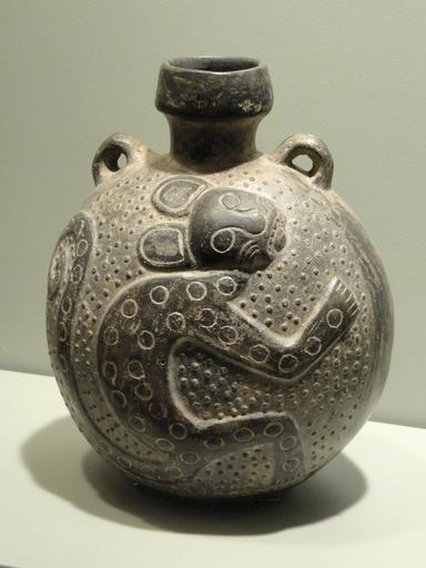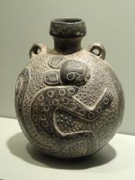 Keywords: Flask with jaguar, 1000-1470 AD, Chimu culture, north coast Peru, earthenware - Gardiner Museum, Toronto - DSC01219.JPG Exhibit in the Gardiner Museum Toronto Ontario Canada This artwork is in the public domain because the artist died more than 70 years ago Photography was permitted in the museum without restriction Daderot 2012-10-16 16 45 26 Daderot cc0 cc0 Pre-Columbian pottery in the Gardiner Museum Chimu pottery |