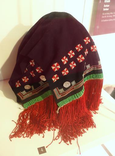 | Keywords: Flat turban, Dao Do, Lang Son, 1990, cotton, embroidery - Vietnamese Women's Museum - Hanoi, Vietnam - DSC03968.JPG en Exhibit in the Vietnamese Women's Museum Hanoi Vietnam Photography was permitted in the museum without restriction 2014-08-04 03 25 52 own Daderot other versions cc-zero Hats in the Vietnamese Women's Museum Uploaded with UploadWizard Yao people in Vietnam Yao clothing | ||||